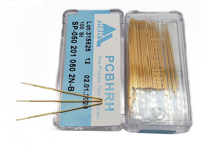 ICT 探針的類型豐富多樣,常見的有標準彈簧探針,適用于多數常規測試場景;E-TYPE? 探針具有較高預緊力,可穿透絕緣層,用于特殊環境下的測試。從尺寸上看,有不同直徑規格,滿足不同測試點間距和空間要求。材質方面,針管、針桿、套管常選用磷銅、鈹銅等材料并進行鍍金、鍍銠處理,以提升導電性與抗腐蝕性。