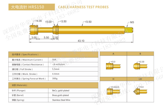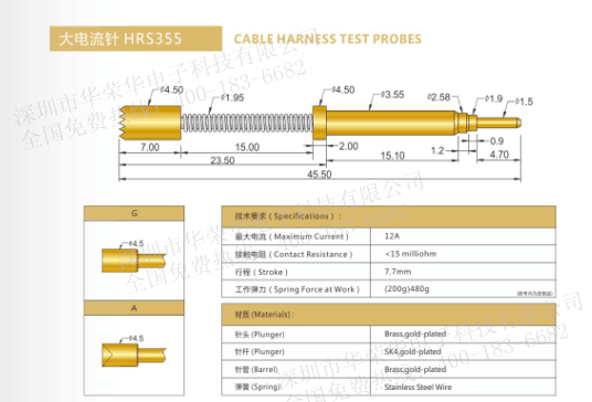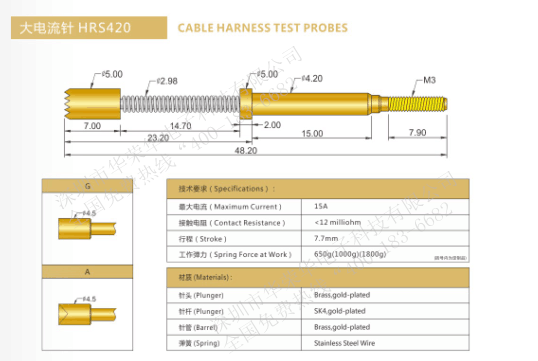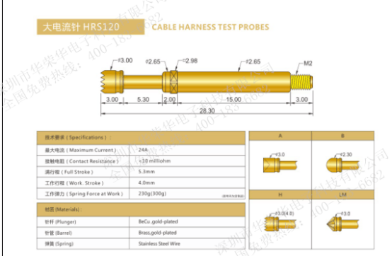 大電流針用于高電流行業(yè)的測試。主要測試、功能測試、信號傳輸、供電、生產(chǎn)期間以及作為內(nèi)置的觸電元件,還有一項應(yīng)用用途是精確測量,針對該用途要用電阻很低的測試探針,所以也叫底電阻探針。