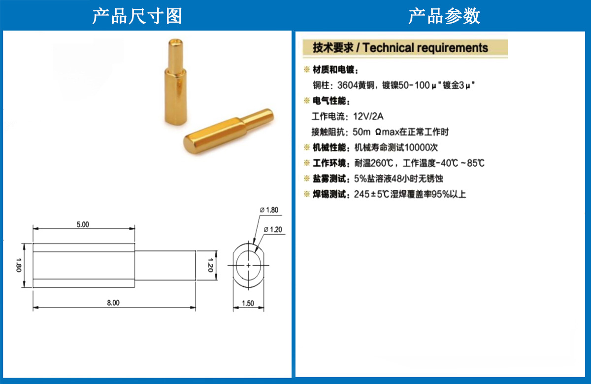 1.8*8.0側(cè)焊銅柱 當(dāng)前位置:首頁 » POGO PIN充電彈簧頂針 » 銅柱系列