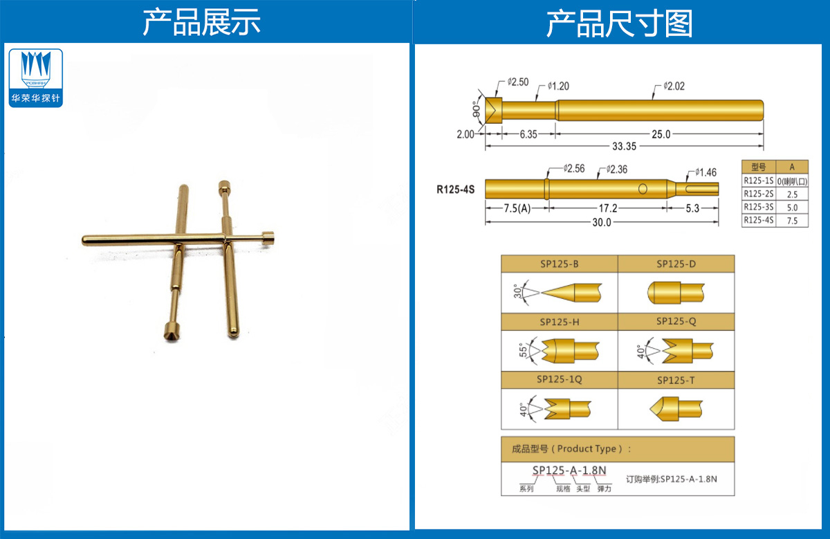 產品簡介:SP125探針、2.02mm測試針、總長33.36mm、彈簧針、測試針、頂針、探針