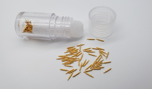 隨著社會的不斷科技化,人們的生活水平也不斷的提高,手機(jī)、電腦、汽車、智能手表等也不斷的普及,對探針的需求也越來越大! 探針是電測試的接觸媒介,為高端精密型電子五金元器件。它在各個領(lǐng)域都有應(yīng)用,例如在醫(yī)療、航空航天、生物、計算機(jī)等領(lǐng)域都有的應(yīng)用。而不同型號的探針,所用的材質(zhì)及價格也會不同。探針的材質(zhì)主要有鈹銅、磷銅、黃銅、SK4、等,今天主要給大家講解一下探針表面為什么要進(jìn)行鍍金處理? 簡單來說,鍍金就是為了防止銅生銹,生銹之后產(chǎn)生的銅綠會增加電阻,探針的穩(wěn)定性及使用功能也會受到影響。 一、鍍金的好處: 1.鍍金層延展性好、易拋光、耐高溫,具有很好的抗變色性能。在銀層上鍍金可以防止銀的變色;金合金鍍層可呈現(xiàn)多種色調(diào),故常用作裝飾性鍍層,如鍍首飾、鐘表零件、藝術(shù)品等。 2.鍍金具有較低的接觸電阻、導(dǎo)電性能良好、易于焊接、耐腐蝕性強(qiáng)、并具有一定的耐磨性(指硬金),因而在精密儀器儀表、